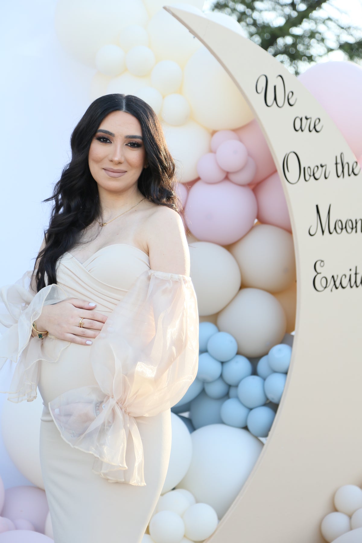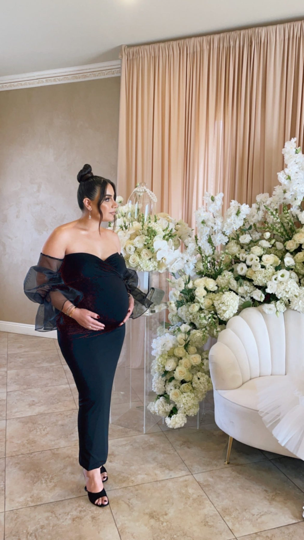 Showcase a chic and elegant look with Anyuta Courure alluring bodycon dress . The dress features a sweetheart neckline, long organza sleeves and fitted silhouette .