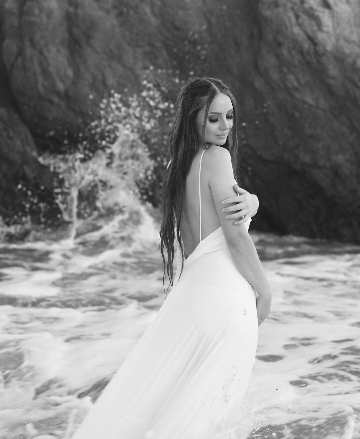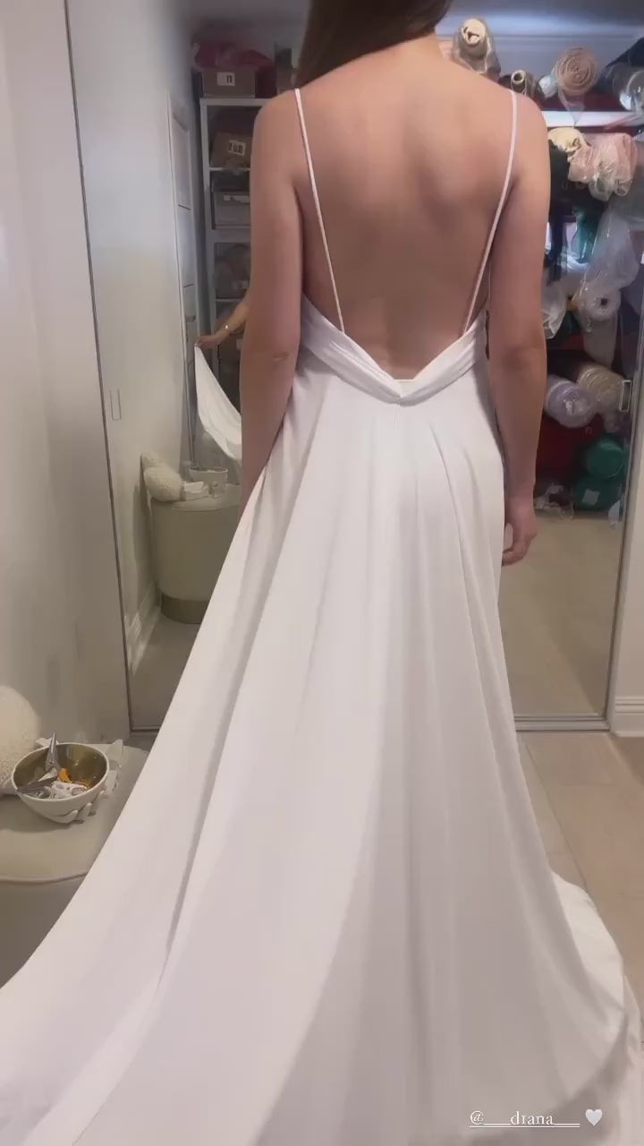 Eternity Maternity Dress is the perfect choice for special occasions, combining elegance and timelessness. This chiffon dress features a flattering v cut in the back and a flowey train, making it ideal for photoshoot purposes. Look and feel confident with AnyutaCouture Eternity Dress