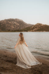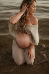 Elevate your maternity photoshoot with this stunning two-piece set, designed to be worn open or closed to beautifully showcase your growing bump. Made from soft, flowy sheer fabric that moves gracefully with you, and paired with stretchy material for a comfortable, flattering fit throughout your pregnancy.