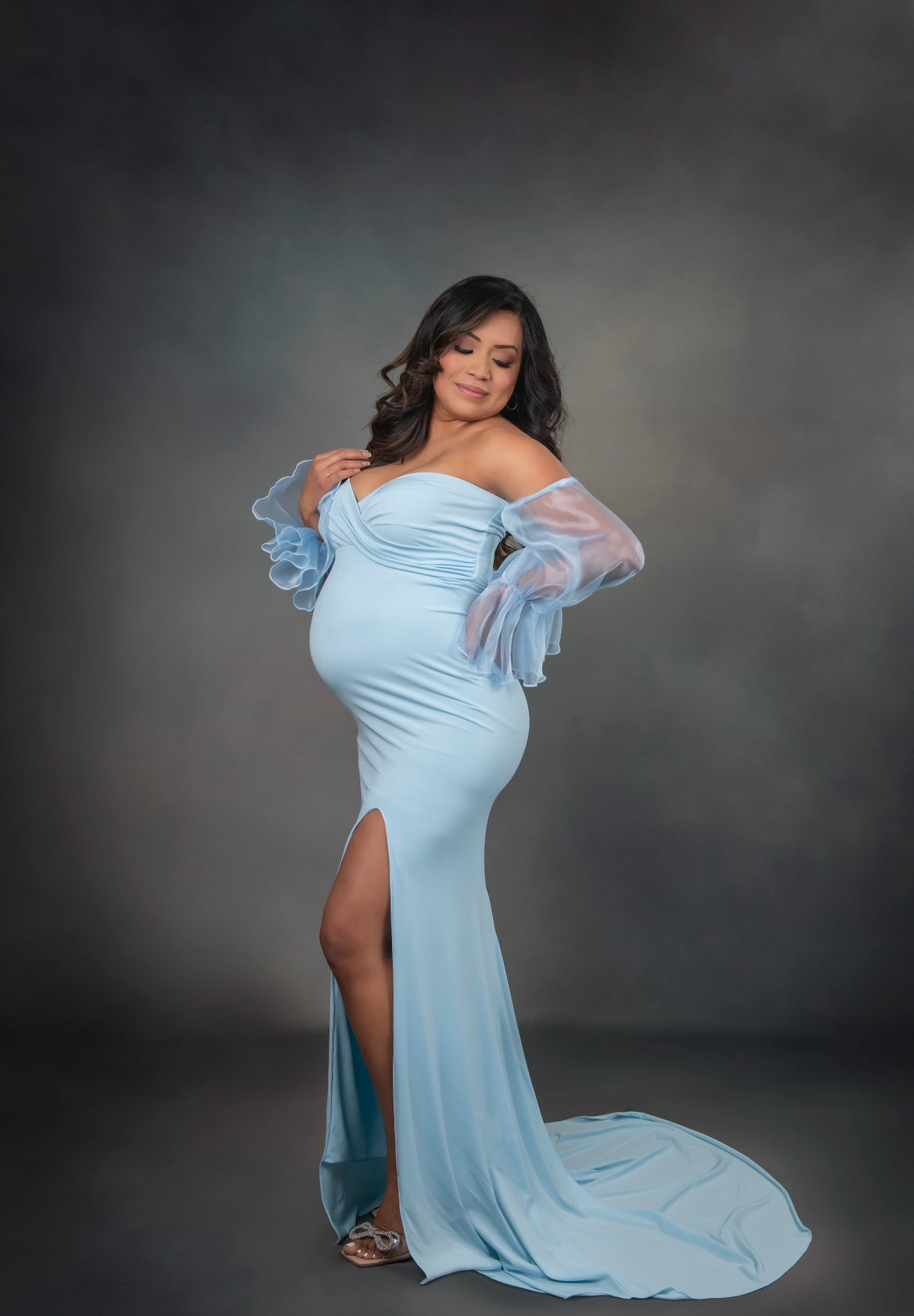 Elegant and timeless, Alyssa Gown is perfect for both baby shower and photoshoot. Crafted in our softest jersey knit fabric.