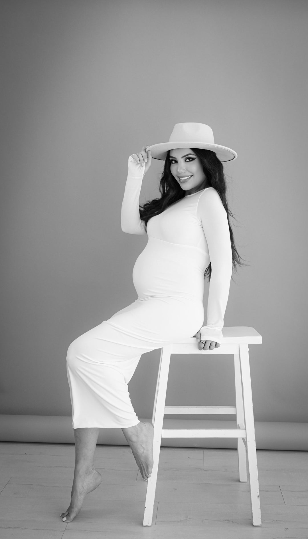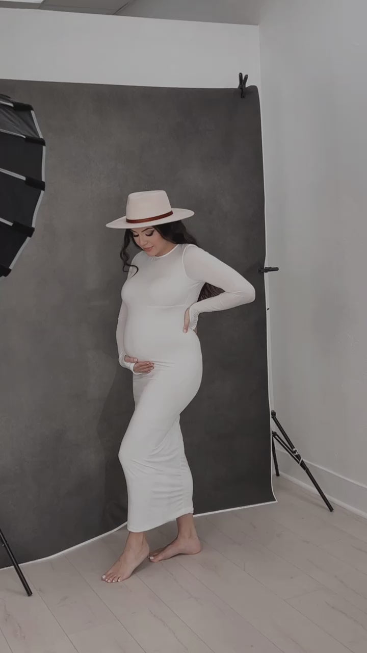 •Beautiful scoop neckline , fitted dress to show off your beautiful bump