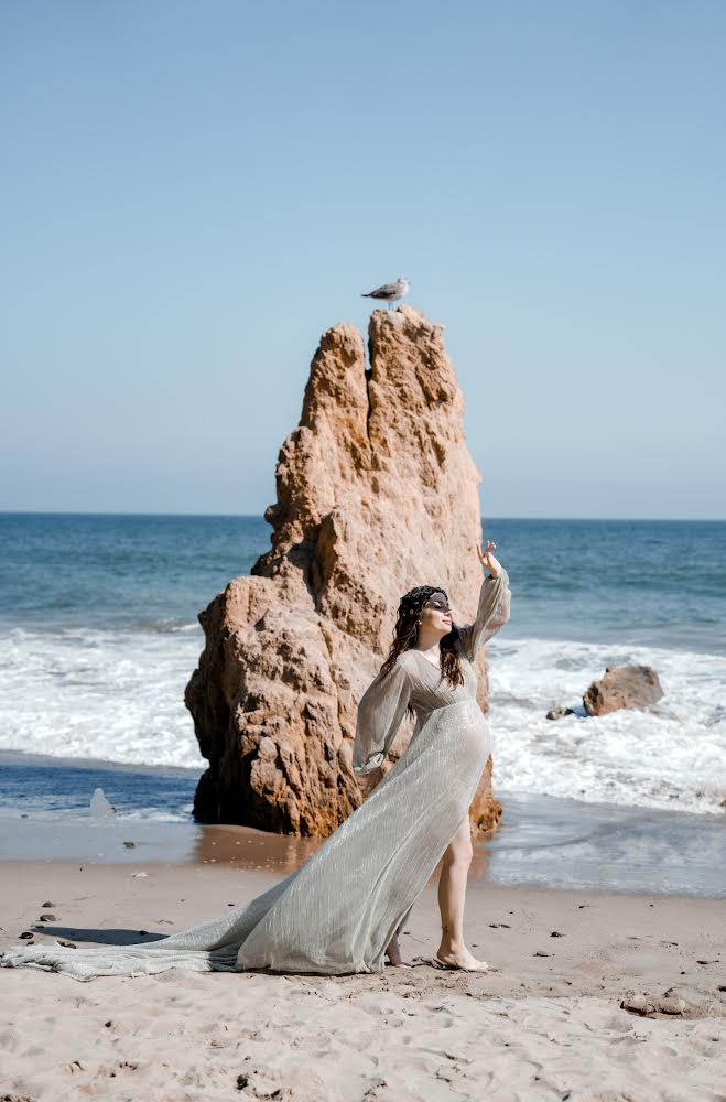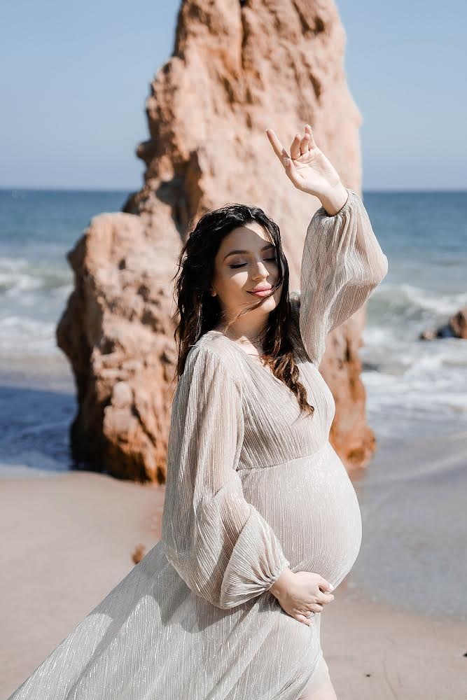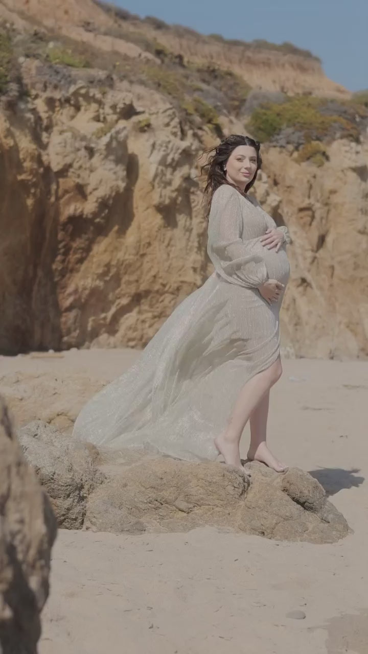 Designed to fit your growing bump, the Belle Maternity Dress is crafted from shimmery, stretchy fabric for comfort and elegance. Perfect for a photoshoot, this dress highlights the beauty of motherhood.