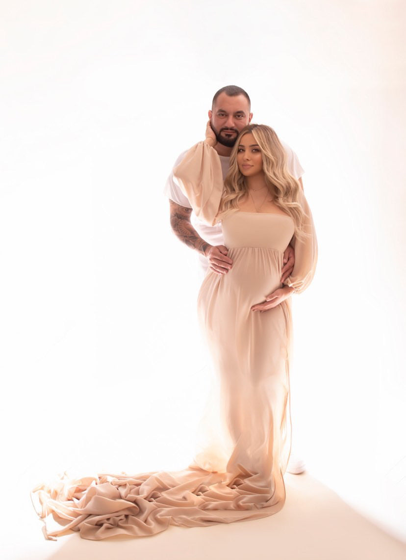 Main picture champagne. This dress is ideal for photo shoot . Dress has side slit .