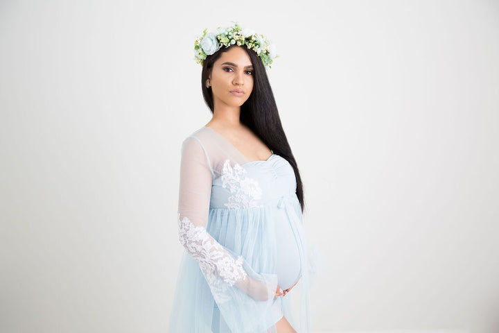Handmade French lace gown with a beautiful mini dress underneath. You can wear the robe with or without under dress . We can customize mini dress to midi or floor length upon request.