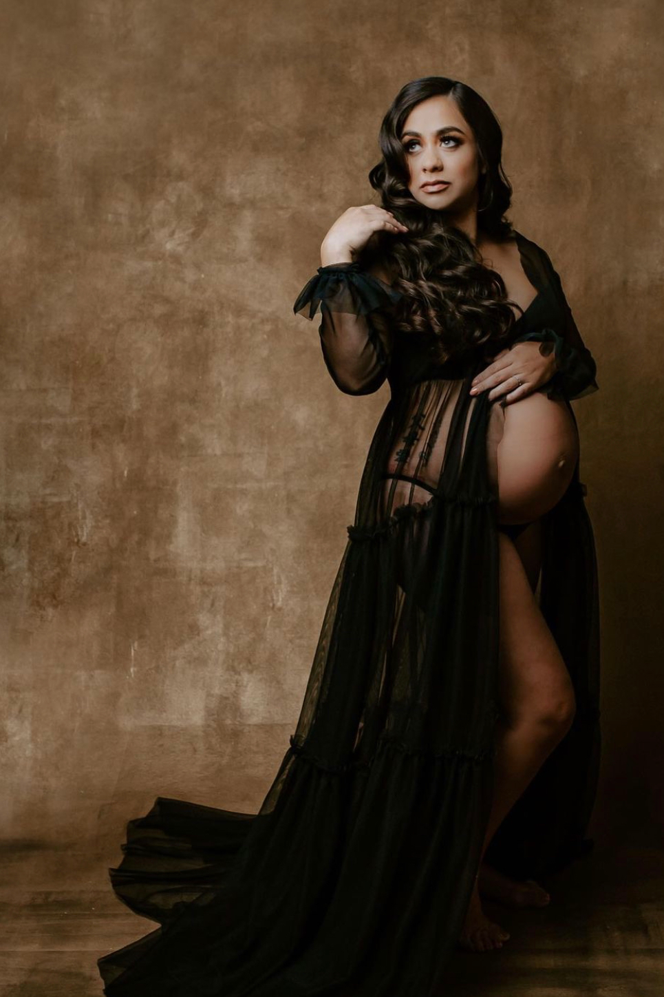 The soft tulle robe features an alluring open front, a ribbon tie-front, long sleeves with  flowy tulle skirt . Pair this robe with a sexy lingerie set or maternity bodysuit to create those romantic vibes.