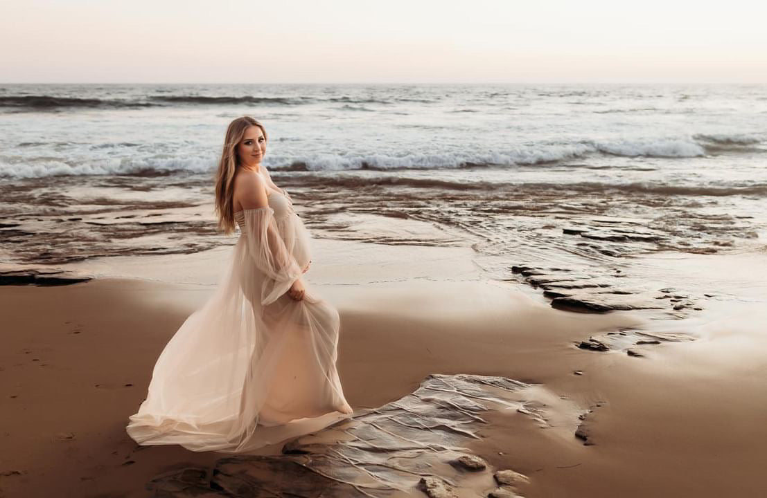 Main picture mommy wearing  champagne ( color may vary in person )