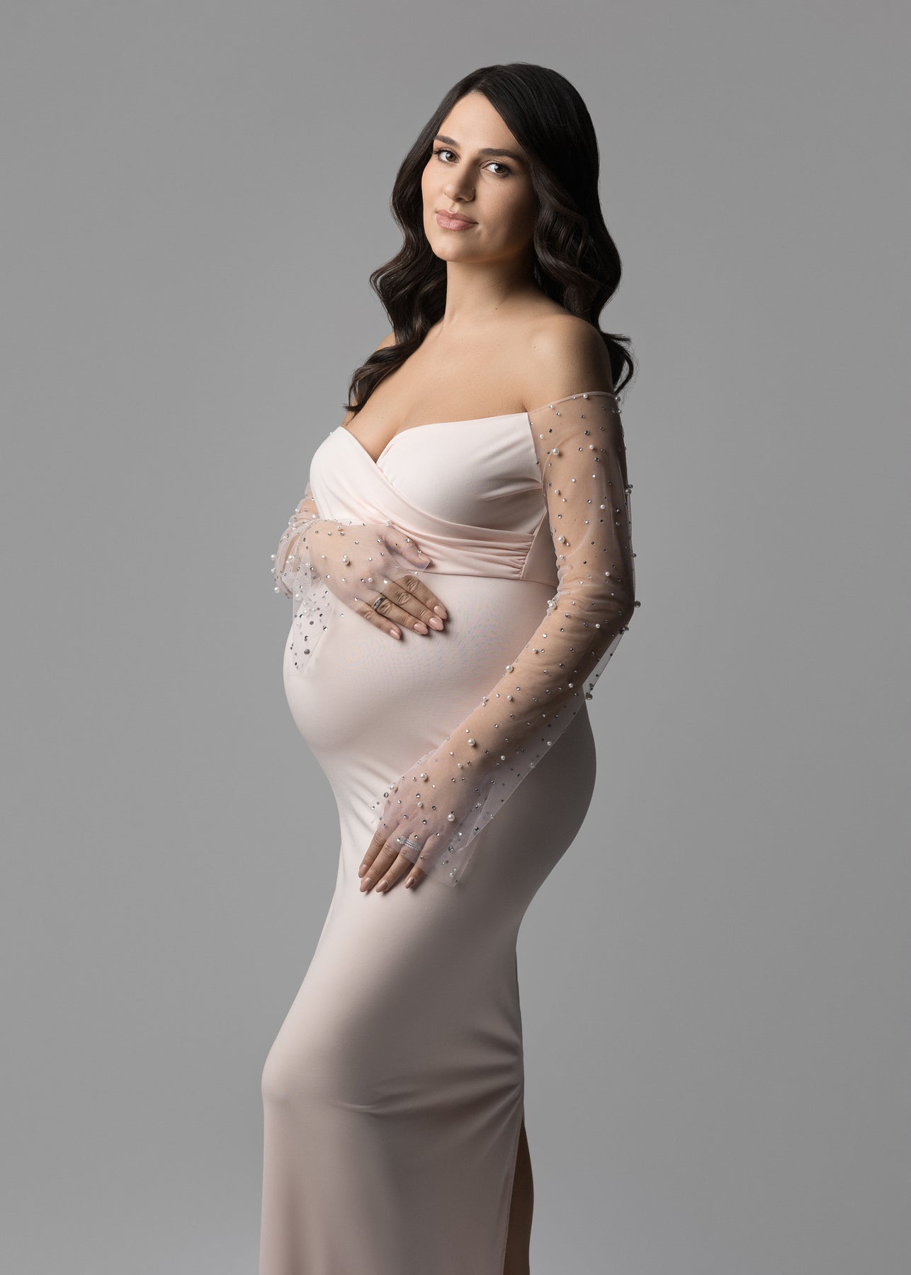 Elevate your baby shower look with Elle Maternity Baby Shower Dress. The sweetheart neckline and classy sleeves add a touch of sophistication, while the slit in the back offers comfort to walk . Perfect for any mama-to-be, this dress is designed to make you feel confident and stylish for your special occasion.
