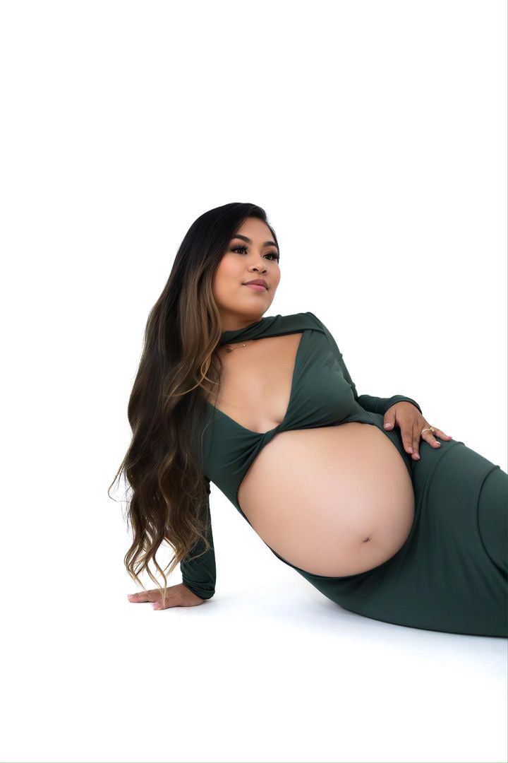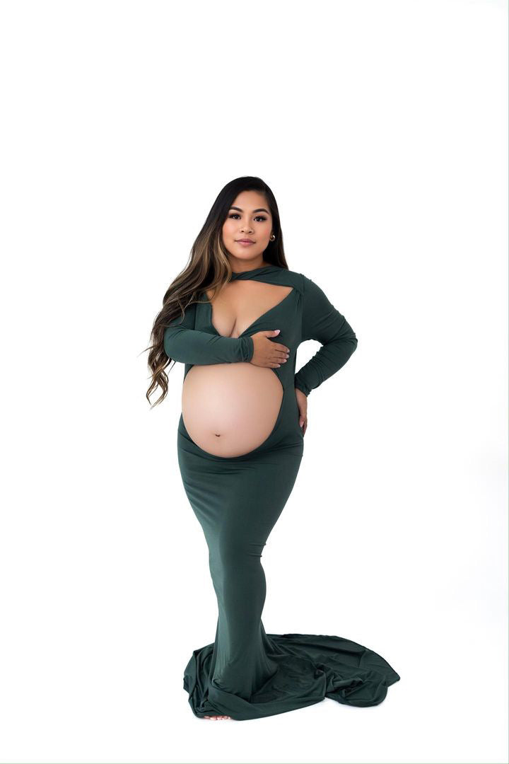 Capture your maternity photoshoot in this unique open belly dress. Crafted from high quality materials, this elegant design features 25+ beautiful and stylish colors to fit your size and style. Petite and plus size mommies are also catered for.